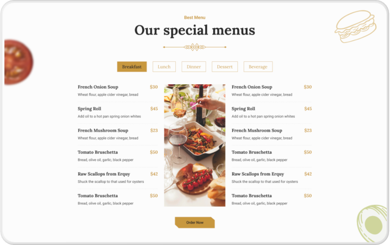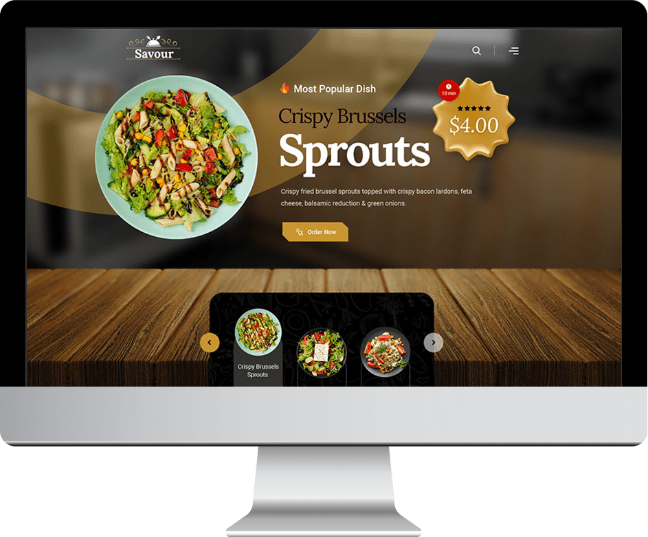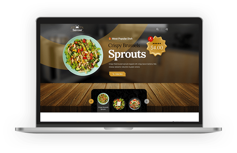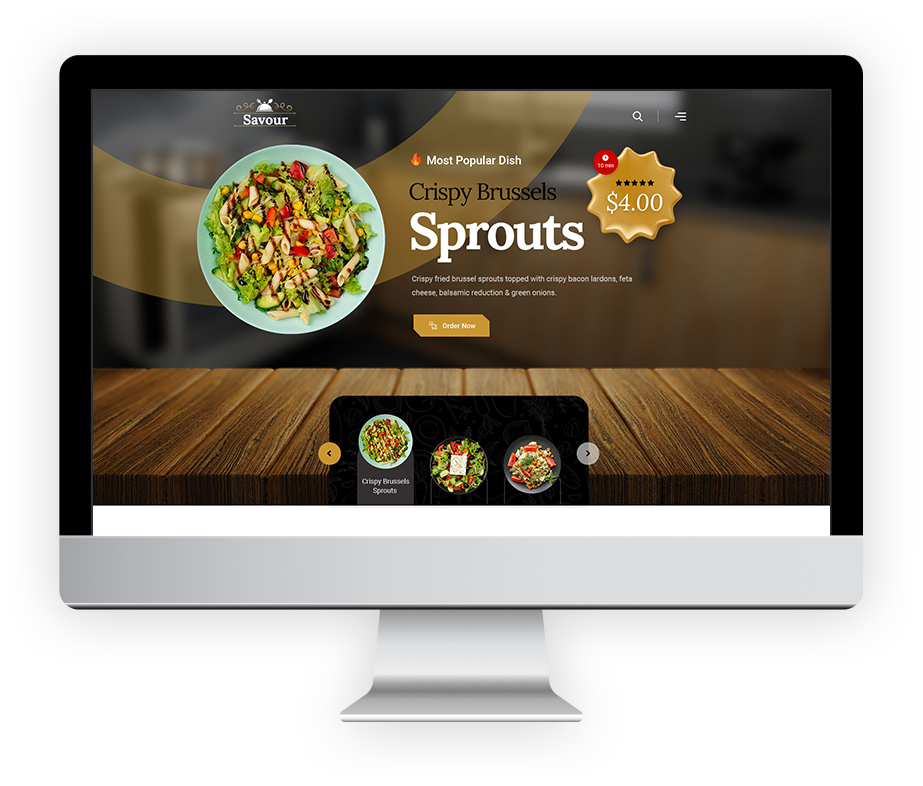 With Savour you can create the perfect restaurant menu and display your dishes in a truly captivating manner. Choose your preferred skin type, decide how you would like to order your specialties and mark the most favored delicacies on your menu.